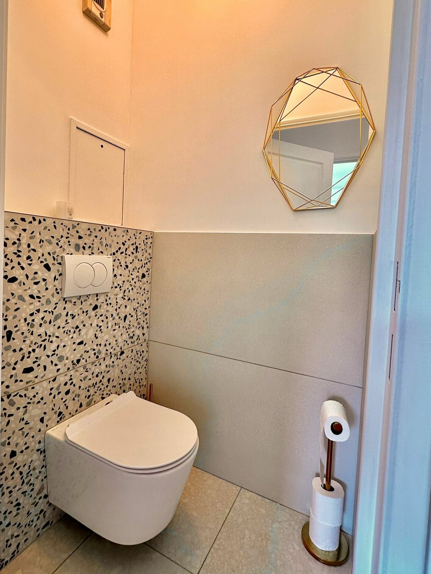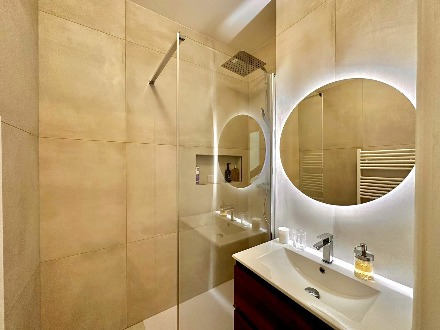 - Une salle de bains avec douche à l'italienne et de WC séparés