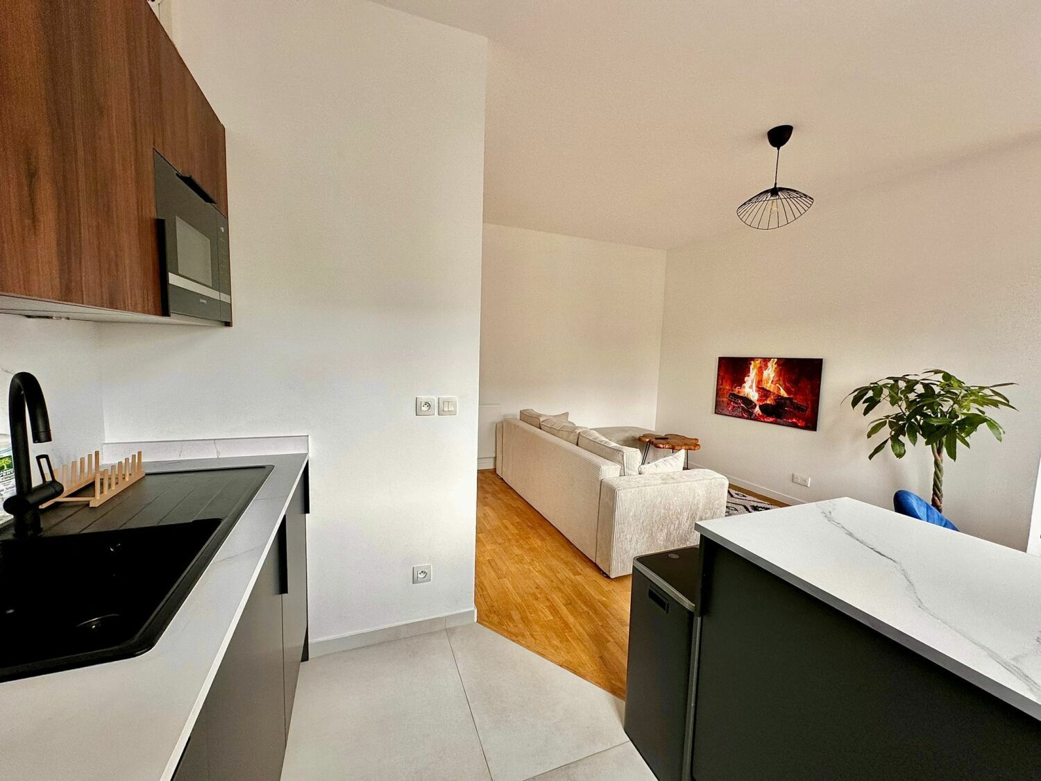 - Une cuisine ouverte moderne et élégante entièrement équipée